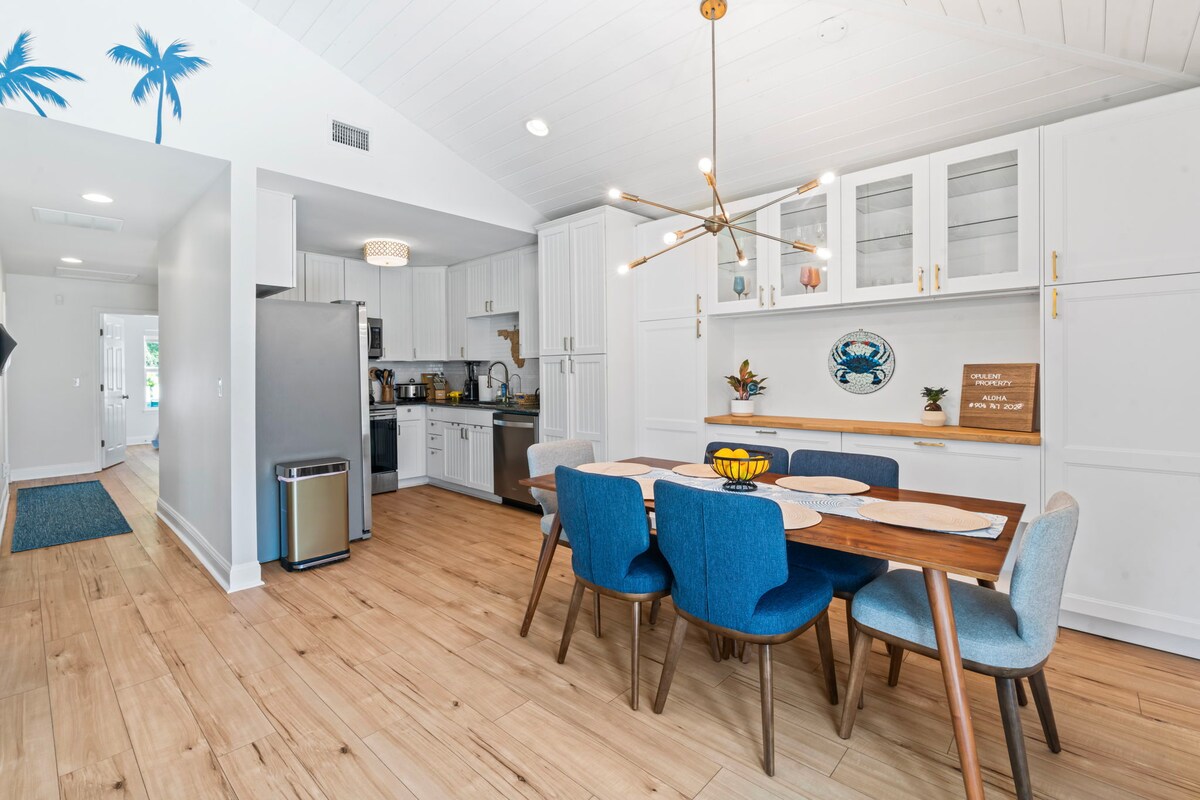 Bienvenue à « The Hideaway ». Profitez de ce bungalow d'inspiration côtière 2d/1ba, approvisionné et meublé pour votre confort et votre commodité. Entrez par un porche avec moustiquaire et détendez-vous en entrant dans le salon principal, assez spacieux pour accueillir jusqu'à six personnes, mais extrêmement confortable pour un séjour romantique pour deux personnes. Situé dans le quartier historique de Lincolnville - à un demi-mille à pied du centre-ville de St. Augustine et à 10 minutes en voiture panoramique de St. Augustine ou de la plage de Vilano. Vraiment un emplacement idéal et un joyau caché.