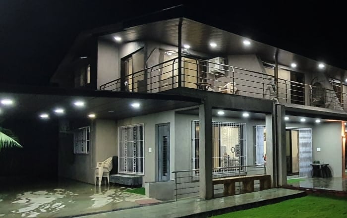 Retirez-vous dans notre ferme paisible, à seulement 10 minutes de Panchgani. Parfaite pour les familles et les petits groupes, notre ferme offre une escapade sereine en pleine nature. Avec 2 grandes chambres et une chambre pour enfants, c'est une ferme confortable pour 4 à 6 personnes. Promenez-vous dans des vergers animés, cueillez des fraises et des papayes fraîches et rencontrez nos sympathiques animaux de ferme. Proche de la ville mais enveloppée de verdure, c'est l'escapade nature idéale. Réservez votre séjour dès aujourd'hui !