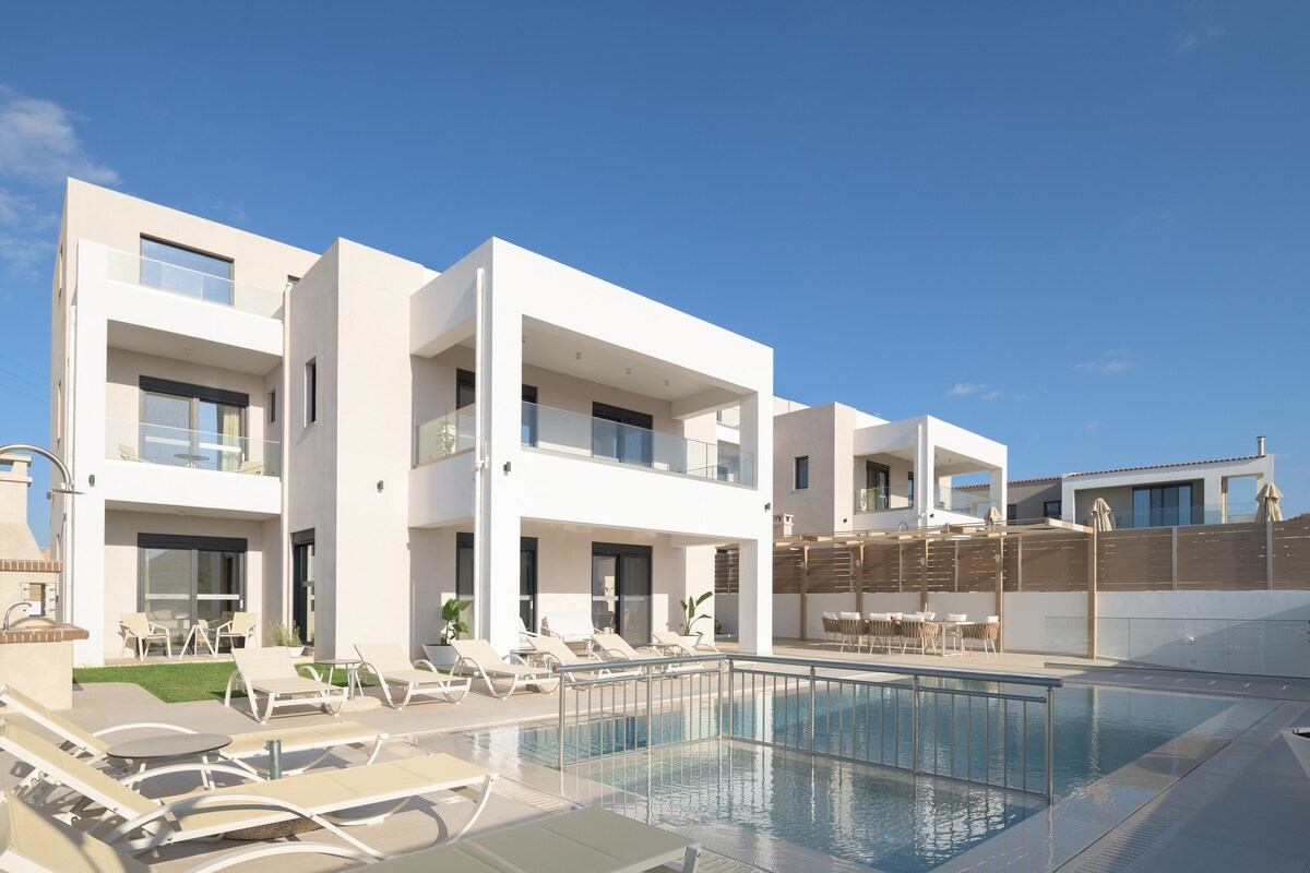 Bienvenue à Avissos Villa I, l'une des deux propriétés extraordinaires du tout nouveau Avissos Resort — un havre de luxe inégalé dans le pittoresque village de Panormo. Située à seulement 600 mètres du bord de mer, cette superbe villa offre la combinaison parfaite de tranquillité, de sophistication et de vue imprenable sur la mer, ce qui en fait une escapade idéale pour les familles, les amis ou toute personne à la recherche d'une retraite somptueuse sur la belle île de Crète.