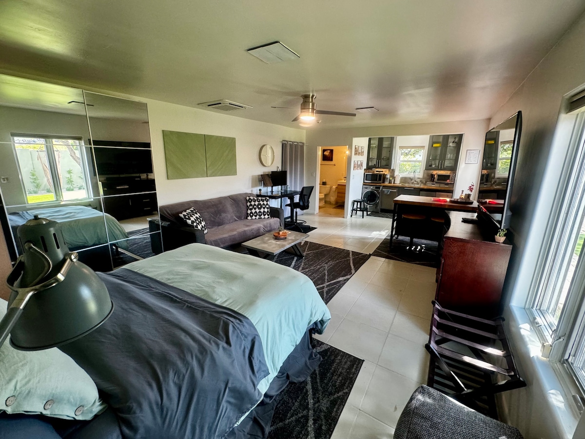 J'appelle cela mon sanctuaire de jardin. Parfait pour l'aventurier solo, le couple ou le voyageur d'affaires. Situé au cœur d'Arcadia, nous sommes à 10 minutes de l'aéroport Sky Harbor, de la vieille ville de Scottsdale et des sentiers de randonnée de Camelback Mountain. En tant que photographe travaillant à domicile et prenant parfois des photos à l'extérieur, je vous assure que ma présence est détendue. 2 chiots amicaux pourraient vous dire bonjour.