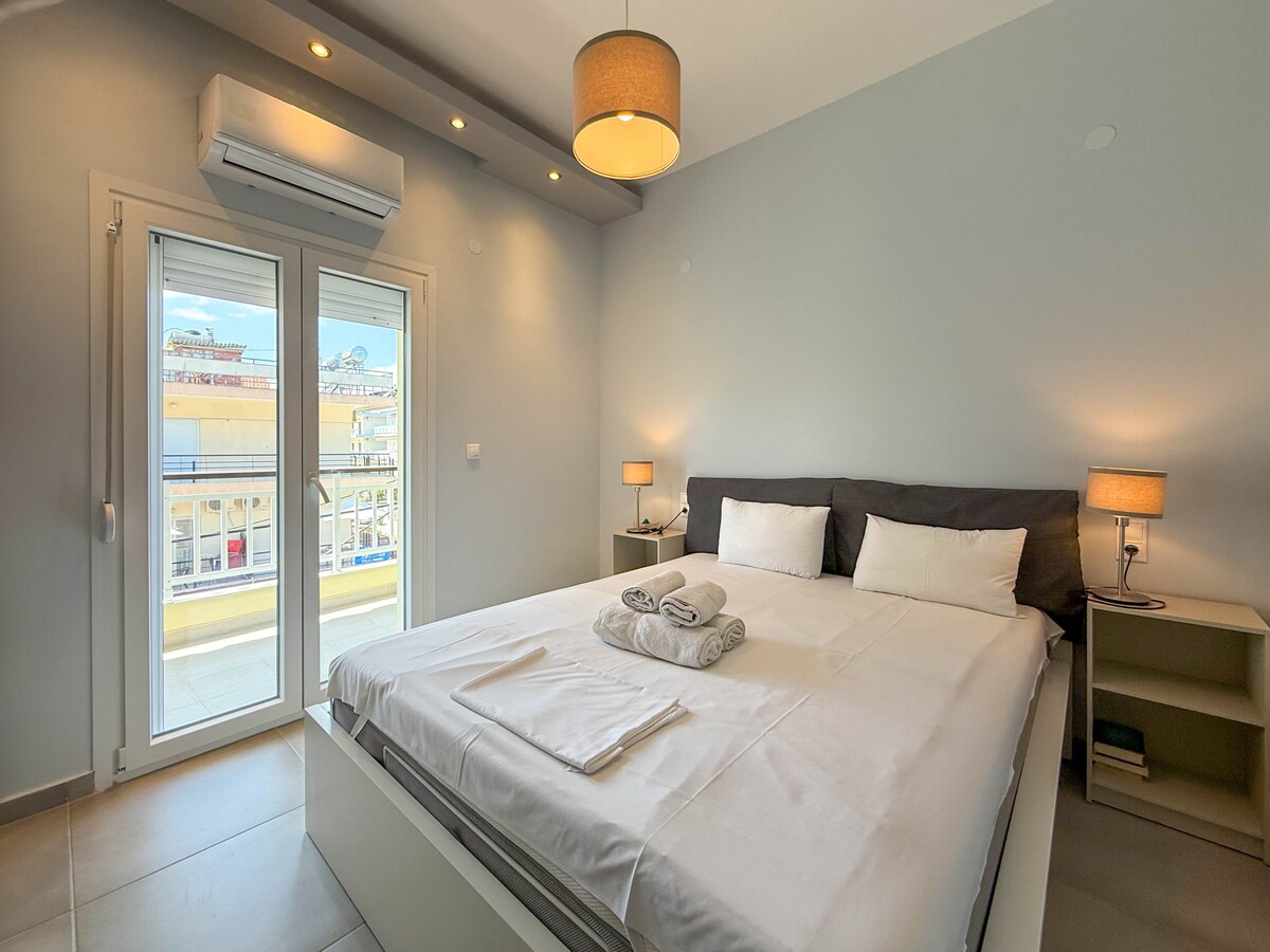 The Accessible Double Room offers a welcoming and inclusive stay, specifically designed for guests with accessibility needs, while delivering a high level of comfort and convenience. It boasts stunning street views, allowing you to soak in the beauty of the first street of Paralia right from your room.