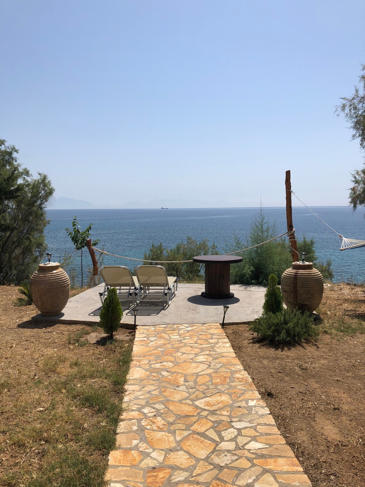 La maison est située dans un emplacement privilégié, sur la plage, vous offrant des vacances sans avoir besoin de voiture. Vous pouvez déguster votre café du matin sur le grand balcon avec vue sur la baie de Messénie et Koroni. La maison dispose de trois chambres, d'une cuisine entièrement équipée, d'une grande salle de bain et d'un salon spacieux avec vue sur la mer. Le centre du village est à seulement trois minutes à pied, offrant un accès facile aux magasins, aux restaurants et aux divertissements.