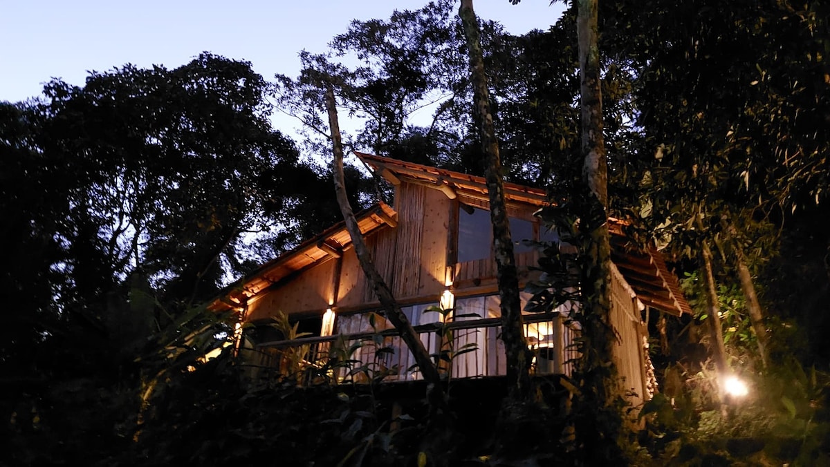Avec une architecture intégrée à la nature, appréciant la belle vue sur la baie de Paraty et les montagnes de la péninsule de Juatinga, la cabane est située dans la zone rurale de Paraty, une région calme où les oiseaux chantent pendant la journée et les cigales la nuit. Il se trouve à 10 km du centre historique, et à proximité, à 3 km, il y a deux plages peu fréquentées mais non moins belles : la plage de Praia Grande et Praia do Rosa. Un charme de lieu inspiré de la maison du pèlerin, conçue pour un couple.