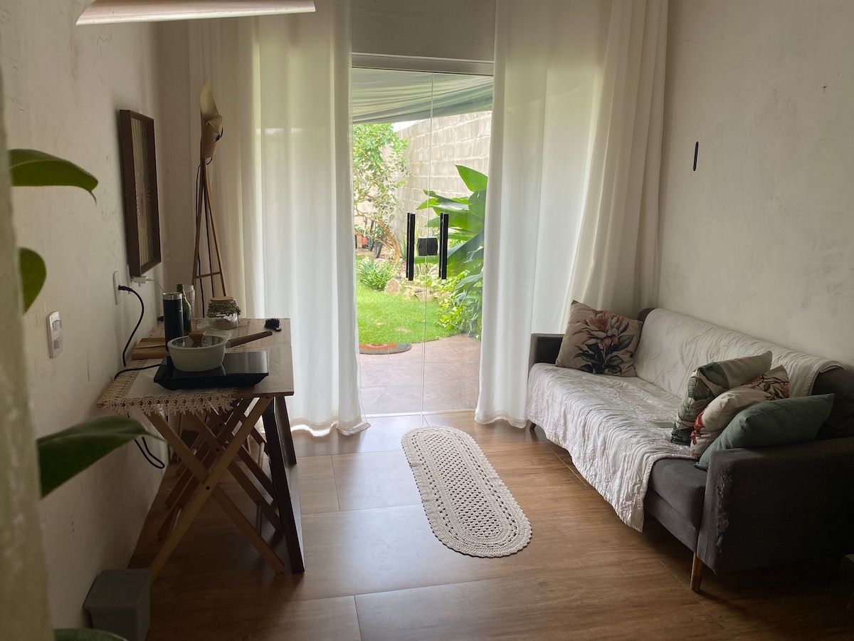 Bistrô 25 – Confort, charme et nature en un seul endroit Logement confortable et moderne, entouré de plantes qui créent une atmosphère calme et agréable. Il est doté d’un lit confortable, de la climatisation, d’une télévision et d’une cuisine entièrement équipée pour votre confort pendant votre séjour. Un logement préparé avec soin pour que vous vous sentiez comme chez vous.