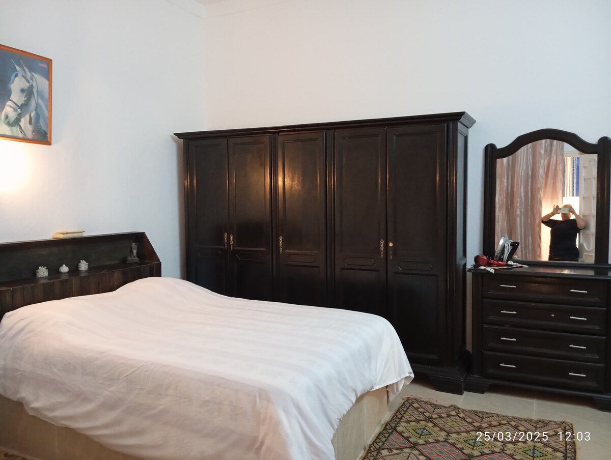 Objectifs de l'🏠escouade ! Cet appartement spacieux et économique peut accueillir 4 voyageurs avec : ✔ 4 lits confortables 🛏️ Vue sur le ✔ balcon 🌇 ✔ Cuisine complète 🍳 🚀 Bonus Perks You' ll Love : Garage ✔ partagé (voiture/moteurs) 🚗 + outils (lave-linge, fer à repasser, lit pour bébé) ✔ Peu loin de Medina 🏰 • Espace de travail 💻 • Climatisation ❄️🔥 ✔ Eau chaude 🔥 + friandises 🍬 + livres électroniques de voyage 📚 ✔ sécurisé 24/7 🔒 🎯 Parfait pour : escouades, routards, télétravailleurs et grands groupes. ✨ Psst… C'est l'un des 3 appartements du même étage ! Grand groupe ? Envoyez-nous un message pour réserver un autre appartement (ou deux !)