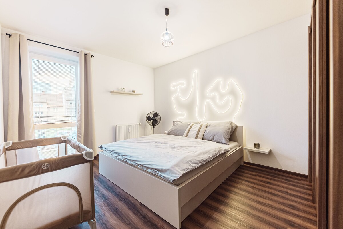 Appartement moderne et entièrement meublé en plein cœur de Pardubice dans un immeuble avec ascenseur. L'appartement est situé à 100 m de Tyršovy sady, à 200 m de Třída Míru ou Palác Pardubice dans un quartier avec de riches équipements civiques. L'appartement est situé au 1er étage et dispose d'une cuisine entièrement équipée (plaque de cuisson à induction, four, hotte, lave-vaisselle, réfrigérateur avec congélateur, micro-ondes), d'une salle de bain avec lave-linge et sèche-linge, d'une télévision dans le salon et d'une connexion Wi-Fi gratuite. Toutes les fenêtres de l'appartement sont orientées vers le parc.