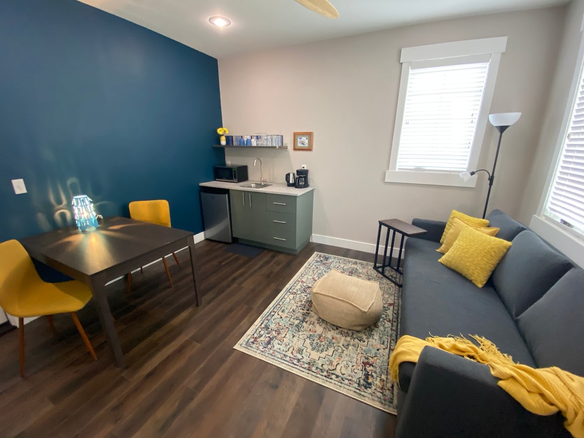 Cette suite avec serrure est un excellent espace pour votre escapade en montagne ! Vous disposerez de votre propre entrée privée (en haut d'un escalier à l'arrière de la résidence privée) et d'une porte à code. Une fois à l'intérieur, vous profiterez d'une suite spacieuse avec 1 chambre et 1 salle de bain, y compris un espace de vie aménagé avec une table, un canapé-lit et une kitchenette. Marchez jusqu'aux sentiers publics, à quelques pas de la rivière Arkansas, à quelques pas du développement South Main et à quelques pas de Main St. Cet espace a tout pour plaire ! (sauf une télévision :))