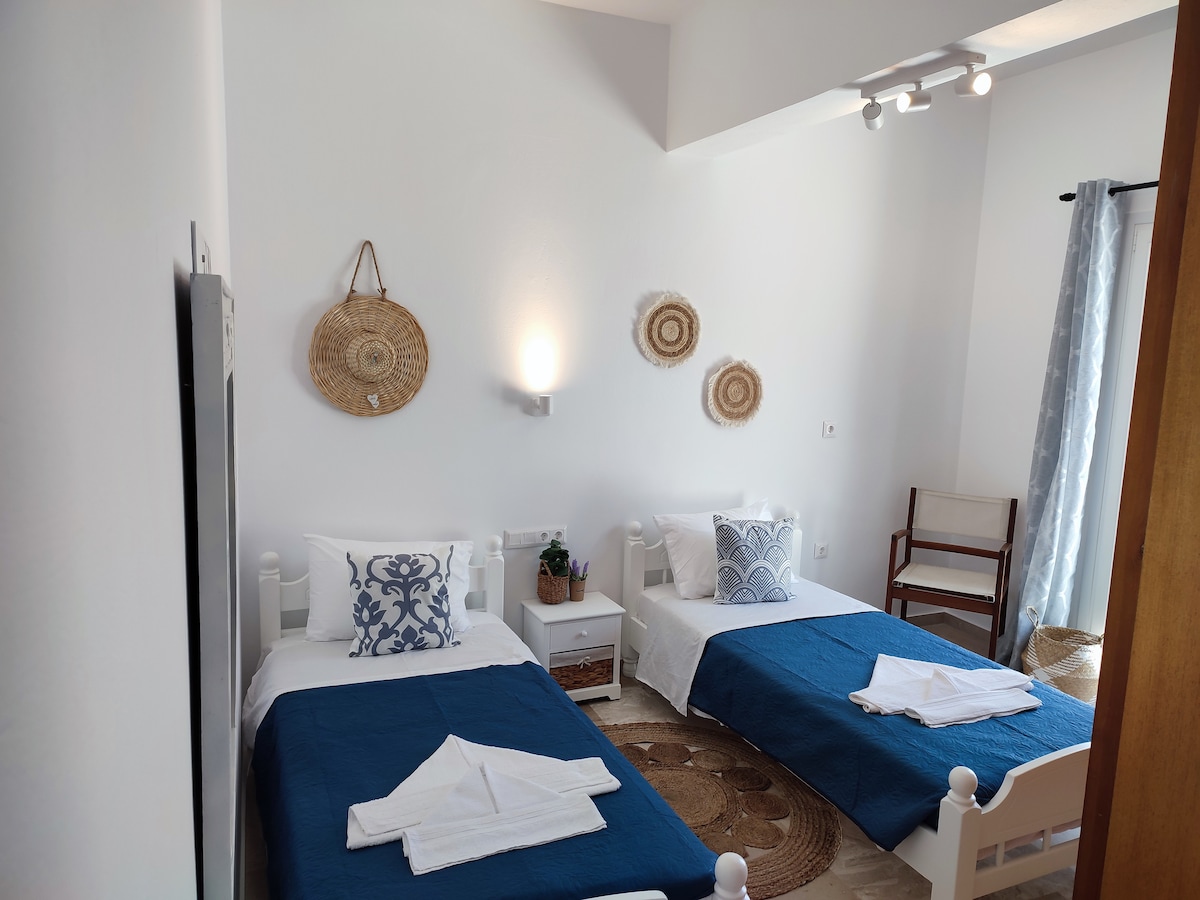 Le studio est situé dans le centre de Paroikia. Il est idéal pour les couples et les amis. La décoration est simple, avec des touches traditionnelles. À l'extérieur, il y a des tables et des chaises en pierre pour profiter de votre petit-déjeuner. Pourtant, le jardin a des oliviers qui offrent ombre et détente. À 30 mètres, il y a un supermarché. En 5 minutes à pied, vous vous retrouverez sur la plage principale de l'île.