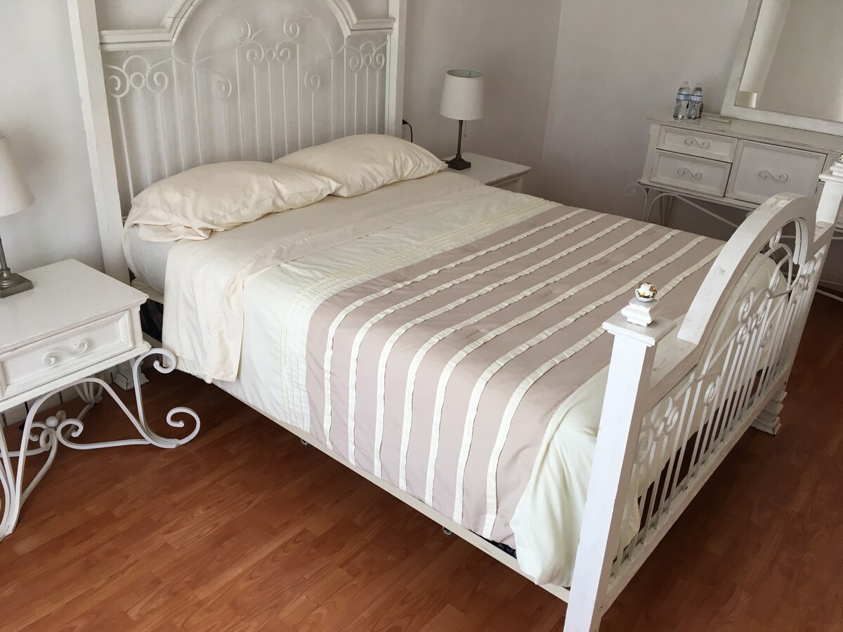 Jolie chambre indépendante , climatisée, avec salle de bain privée, qui dispose d'un lit King, climat mini split, bureaux, lampes, T.V, table, deux chaises, cafetière, assiettes, tasses et couverts. Vous avez accès à la cour avec rôtissoire, évier, table extérieure et chaises. Il est situé à un pâté de maisons de la rue principale et à trois pâtés de maisons de la place de l'Horloge.