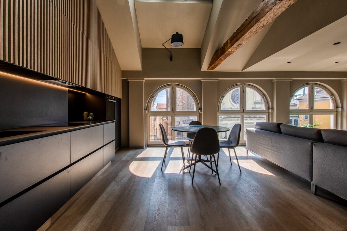 Récemment rénové, notre appartement est situé au cœur du centre historique, surplombant la pittoresque Piazza Virginio, où vous pourrez admirer la merveilleuse église désacralisée de San Francesco, qui abrite désormais également le musée civique. L'emplacement central de notre appartement vous permettra de vous immerger facilement et pleinement dans la vie de Cuneo. Sur la place en contrebas, dans les ruelles adjacentes et le long de la célèbre Via Roma, vous trouverez un large choix de restaurants, bars et boutiques.