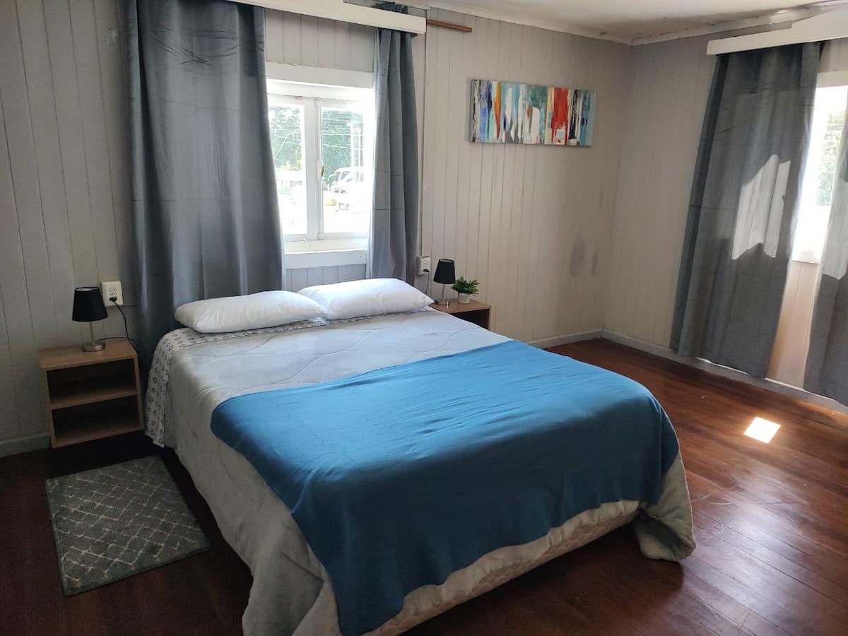 Chambre avec salle de bain privée pour 2 personnes dans le secteur résidentiel du llanquihue. Située dans une auberge à 200 mètres du lac. 10 min à pied de la gare . Check In : 14 h jusqu'à 22 h 00. Check out : 11 h