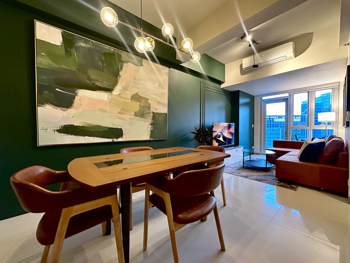 Profitez d'un séjour urbain confortable dans notre condo d'une chambre au cœur de Uptown BGC. À quelques pas du centre commercial Uptown, de Mitsukoshi, des restaurants, des bars et des bureaux. Détendez-vous sur le balcon privé, regardez des émissions en streaming avec une connexion wifi rapide et Netflix, ou relaxez-vous dans le salon confortable. Parfait pour les voyageurs d'affaires, les couples ou les aventuriers en solo à la recherche de commodité et de confort à BGC.