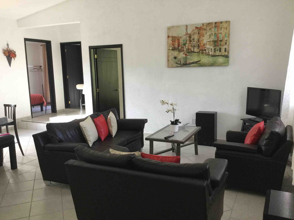 Bel appartement de deux chambres pour 6 personnes, endroit calme, sécurité, détente et ambiance familiale à 4 pâtés de maisons du centre où vous pourrez vous reposer et profiter des spas d'eau thermale à proximité à 26 min. de « El Géiser » 12 min de « El Arenal » en plus des lieux historiques de la ville magique.