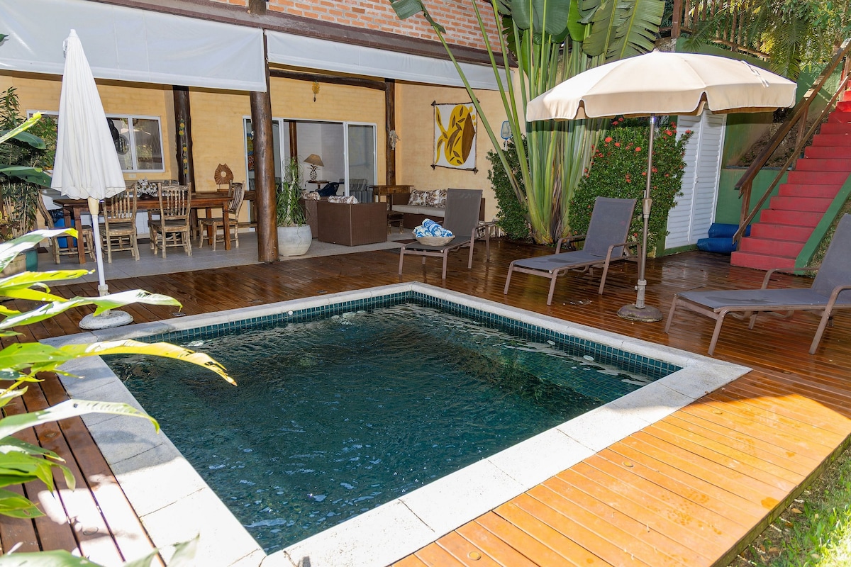 Imaginez-vous dans un endroit où tout a été préparé avec soin, pour que vous viviez une expérience unique : l'air d'une ferme mêlé aux beautés de la mer et dans un endroit facilement accessible, proche de l'autoroute. C'est la Casa das Mangueiras! Située entre une forêt de manguiers et la plage, la maison offre une atmosphère calme et réservée avec une piscine chauffée exclusivement pour vous. Namaste. Nous acceptons 1 animal de compagnie par séjour jusqu'à 20 kg.
