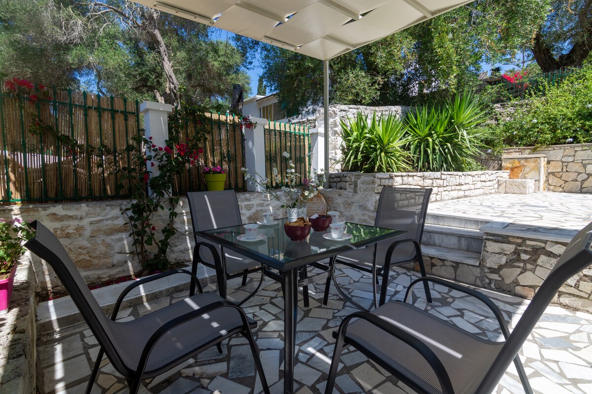 Bienvenue dans notre belle maison à Paxos, l'île de Poséidon. Notre maison traditionnelle en pierre, spacieuse et sereine, entourée d'oliveraies, est le meilleur endroit pour des vacances paisibles, loin des zones bondées et bruyantes. La maison dispose d'une grande cour, avec mobilier de jardin et notre hamac préféré, où vous pouvez trouver des endroits ensoleillés et ombragés à toute heure de la journée. Elle offre une vue imprenable sur la mer entre les oliveraies. Parfait en famille ou entre amis.