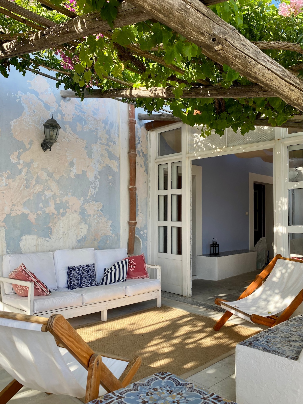Détendez-vous lors de cette escapade unique et tranquille. Perchée sur une colline isolée, cette maison rustique de style éolien offre une vue imprenable sur la mer, les montagnes et les îles. Entourée par la nature et un grand jardin privé paisible rempli de citronniers et d'orangers, c'est une maison qui célèbre la simplicité et la beauté, conçue pour des matins tranquilles, de longs repas et des nuits étoilées. En sirotant votre apéritif et vos olives le soir, vous assisterez aux meilleurs couchers de soleil sur la terrasse et le jardin.