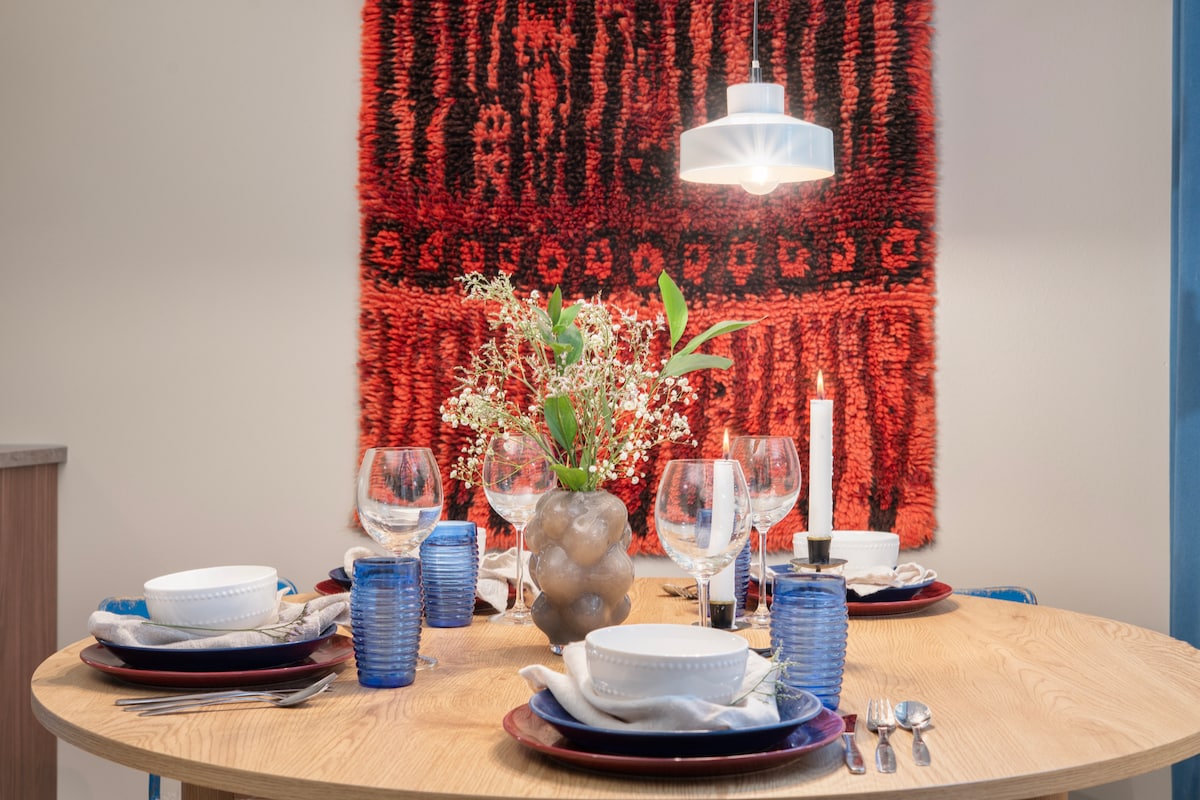 Profitez d'un séjour relaxant dans cet appartement confortable de deux pièces avec sauna privé, à quelques minutes du centre-ville, mais dans un quartier calme. Dormez bien dans la chambre flexible (double ou deux simples) et utilisez le canapé-lit pour les invités supplémentaires. La maison est entièrement équipée de tout le confort moderne : lave-vaisselle, lave-linge, sèche-linge, micro-ondes, cafetières/bouilloires, grille-pain et WiFi gratuit. Les planchers chauffants, le sauna et la boîte à clés ajoutent à la commodité. Une place de parking privée avec prise de chauffage juste à côté de l'appartement est incluse.