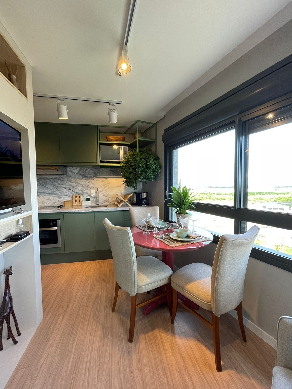 Le bâtiment INN, où se rencontrent le parc et l'âme, permet aux clients de profiter de tout le confort et la sécurité du Parque Una, et d'avoir un plus grand lien avec la nature ! Le ROOFTOP (espace commun de l'immeuble INN) est (porte à porte) avec notre loft, offrant au client non seulement des moments de loisirs inoubliables, mais finit aussi par devenir une extension de l'appartement ! L'appartement offre une vue imprenable sur la table de la salle à manger.