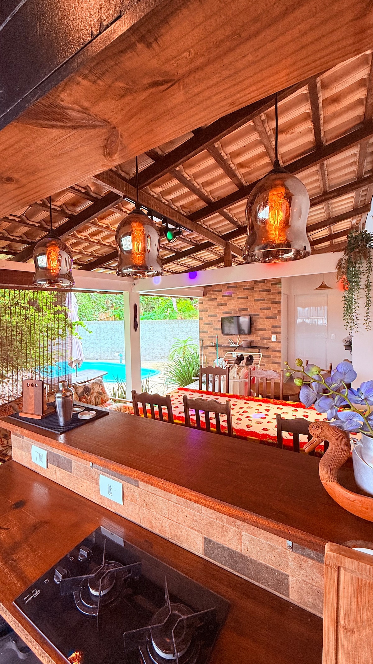 Maison avec piscine, espace gourmet avec évier, barbecue, smart TV, son et cuisine complète, 3 suites et 1 chambre. Salle de séjour avec télévision par abonnement, Netflix, Disney+, Globoplay, HBO max et net 1000 Go Wi-Fi dans toute la maison et Internet câblé dans toutes les chambres et salle de télévision, douches et robinets avec chauffage, patio pour deux à trois voitures, sécurité et beaucoup de confort notre plus haute priorité.