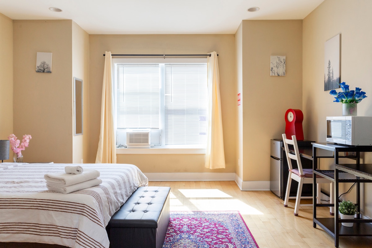 Ce studio est situé en plein cœur de Chinatown où se trouvent tous les bars touristiques, restaurants, épiceries et boutiques. Seulement 1 à 2 minutes en bas des escaliers. À un pâté de maisons du centre des congrès, à distance de marche de la ville, à 15 minutes en voiture du sud de Philadelphie, à quelques pas de tous les arrêts de bus et gares. Séjour le plus pratique, mais le bâtiment est situé au cœur de Chinatown et les murs sont minces de sorte que cela peut devenir bruyant, veuillez envisager lors de la réservation si vous êtes sensible au son.