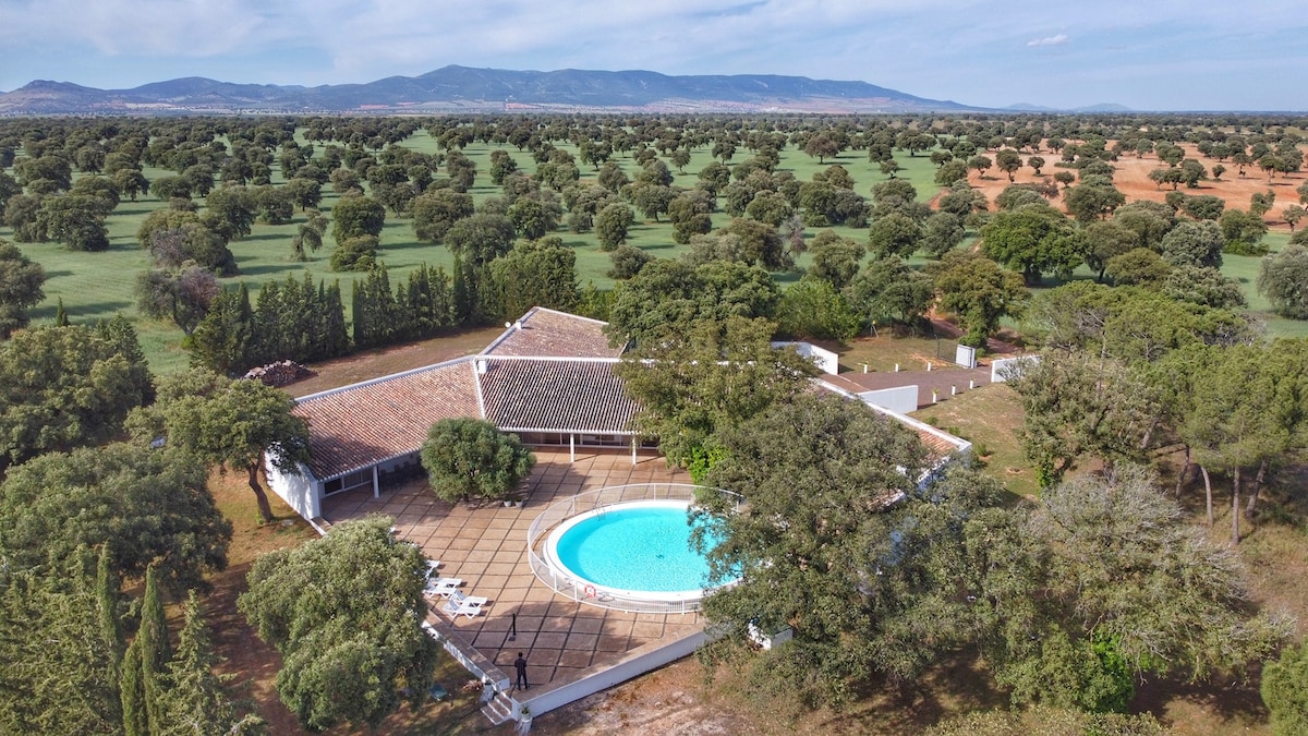 Un havre de paix dans les terres de la Manche...un environnement naturel qui rappelle de grandes histoires de chevaliers, de géants, de moulins et de confiseries et une belle maison rurale où les raconter. Bienvenue à La Granja, dans la ville de Aldea del Rey (Ciudad Real). Quatre chambres (3 doubles et une triple) deux salles de bains, deux grands salons, piscine, barbecue et très envie de profiter en famille et entre amis ! Location complète week-end 480 € Reste semaine 200 € / nuit