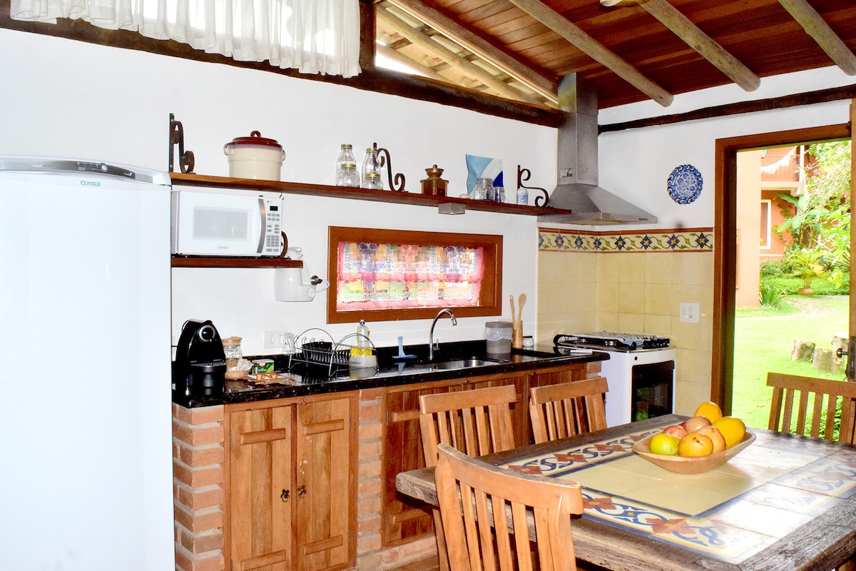 Appartement complet, incluant le buffet du déjeuner et le service en chambre. Situé dans la Pousada Katmandu avec accès gratuit à la piscine extérieure chauffée, au bar de la terrasse, aux jeux, à la végétation luxuriante et plus encore. L'appartement dispose d'un salon avec une cuisine complète, d'une salle de bain et d'une chambre avec un lit double et un lit simple. Equipado avec climatisation et TV. Situé à 350 m de la plage et à proximité du centre de Maresias.