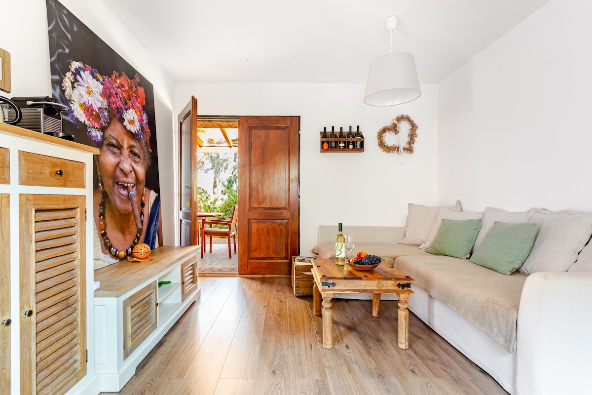 La petite maison, qui est située sur le terrain commun avec la maison familiale dans laquelle nous vivons. La maison dispose d'une terrasse avec une cheminée et un coin salon donnant sur le jardin. Il y a 2 chambres séparées et une salle de bain avec sauna (pour 2 personnes), qui peut être utilisée. La chambre a un lit queen, le salon est équipé d'un canapé-lit offrant un sommeil confortable pour 2 personnes. Il n'y a pas de cuisine, vous ne pouvez doncpas cuisiner. Il y a un réfrigérateur, une machine à café Nespresso, une bouilloire, des assiettes, des verres, des couverts