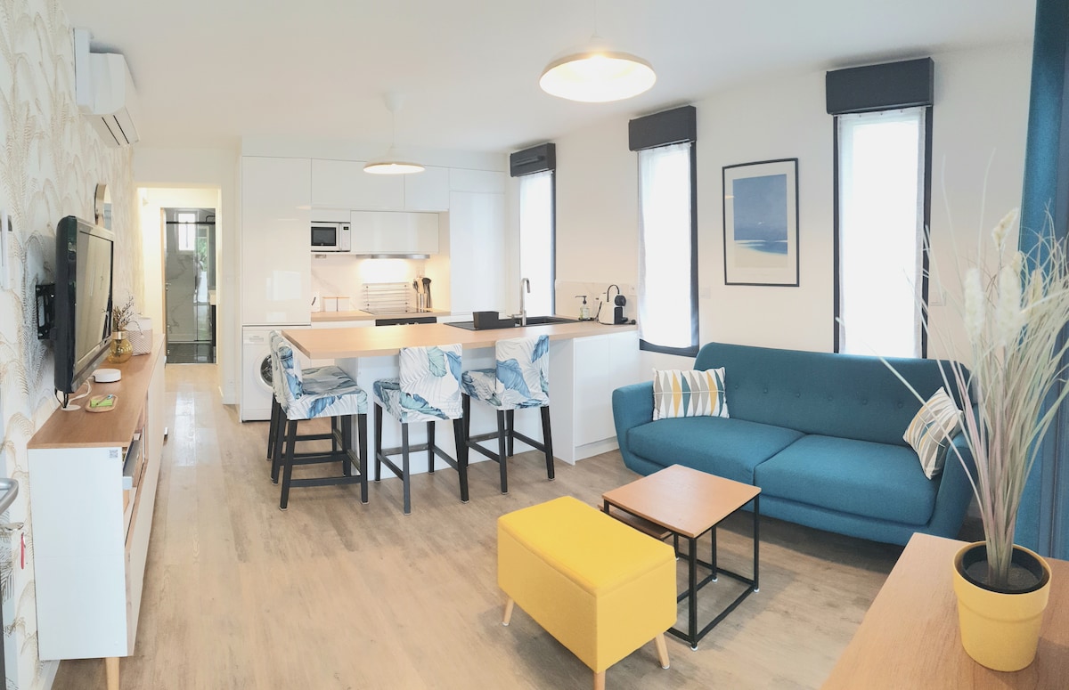 Pour votre prochain séjour à Carnon Plage, la Suite Casa Azul, un cocon moderne dédié à la détente et idéal pour se retrouver à deux. Profitez d’une baignoire balnéo, d’un lit queen-size confortable avec miroir au plafond et d’un balcon offrant une vue sur le port et l’étang de l’Or. Climatisation réversible, parking privé et cuisine entièrement équipée complètent ce lieu pensé pour le confort et l’évasion. Idéal pour une escapade romantique, à quelques minutes de Montpellier et des plages.