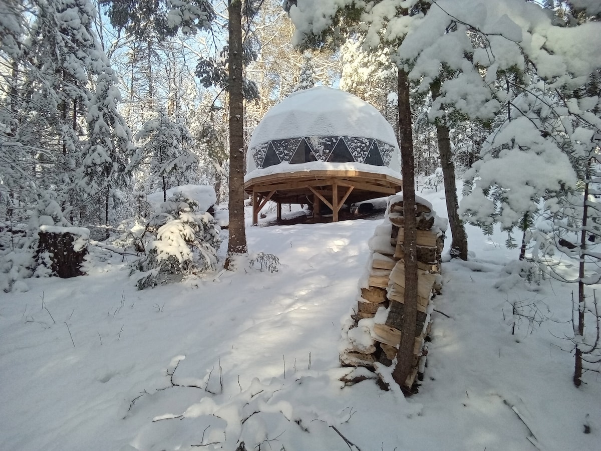 Dôme écologique tranquille à Muskoka dans la forêt avec lac