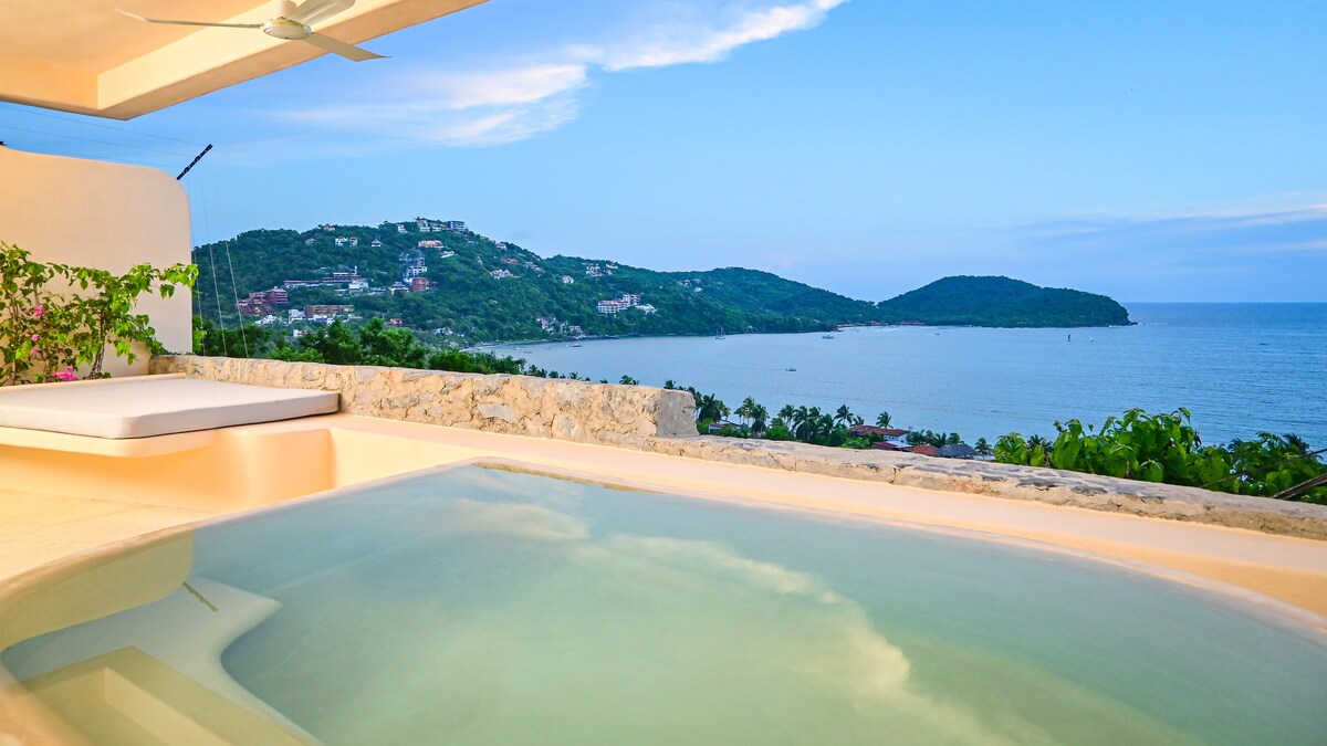 Profitez d’un séjour paisible à La Tortola Villa, avec piscine privée et superbe vue, à seulement 10 minutes à pied de la plage La Ropa. Savourez un ceviche local, détendez-vous dans les hôtels voisins avec un minimum de consommation, ou dînez dans les restaurants tout proches. Située à 15 min de l’aéroport et à 10 min du centre de Zihuatanejo.