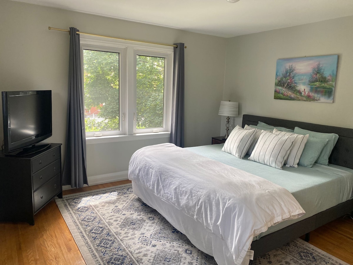 Cette maison centenaire entièrement rénovée est dans l'emplacement idéal pour découvrir Peterborough ! Appartement chaleureux et accueillant au rez-de-chaussée avec 2 chambres, 2 lits Queen Size, 2 téléviseurs, une connexion Wi-Fi, un espace de travail séparé, une buanderie sur place, une cour arrière clôturée, un porche, un patio et bien plus encore ! Entrée privée séparée de ce rez-de-chaussée avec de nombreuses fenêtres, il est lumineux et confortable. À distance de marche du Peterborough Memorial Center, du marché fermier, du parc Del Crary et du centre-ville de Peterborough.