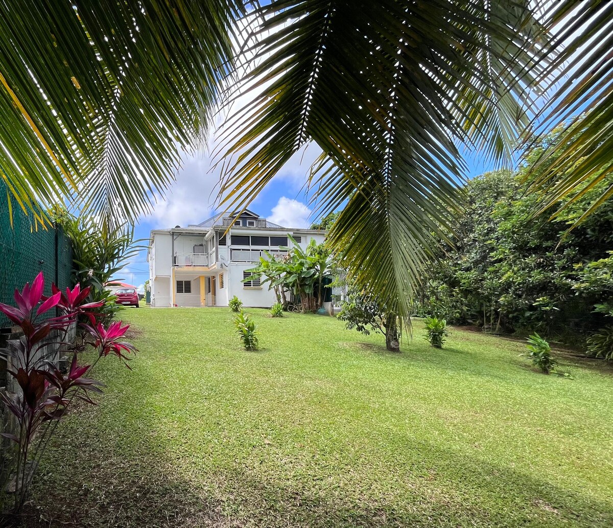 T2 HARMONIE avec accès à la piscine familiale (privatisé au passage des locataires) en bas de villa avec une entrée indépendante, parking, citerne d'eau et équipement solaire en cas de coupure edf.. Situé dans un quartier au paysage verdoyant à l’ambiance calme. À 5 min de la kassaverie et des rivières, le Canyon de la Moustique, d’une beauté exceptionnelle idéale à faire en randonnée se trouve à proximité. Zone d’activités à 10min (petit centre commercial, restaurants, pharmacie, médecins).