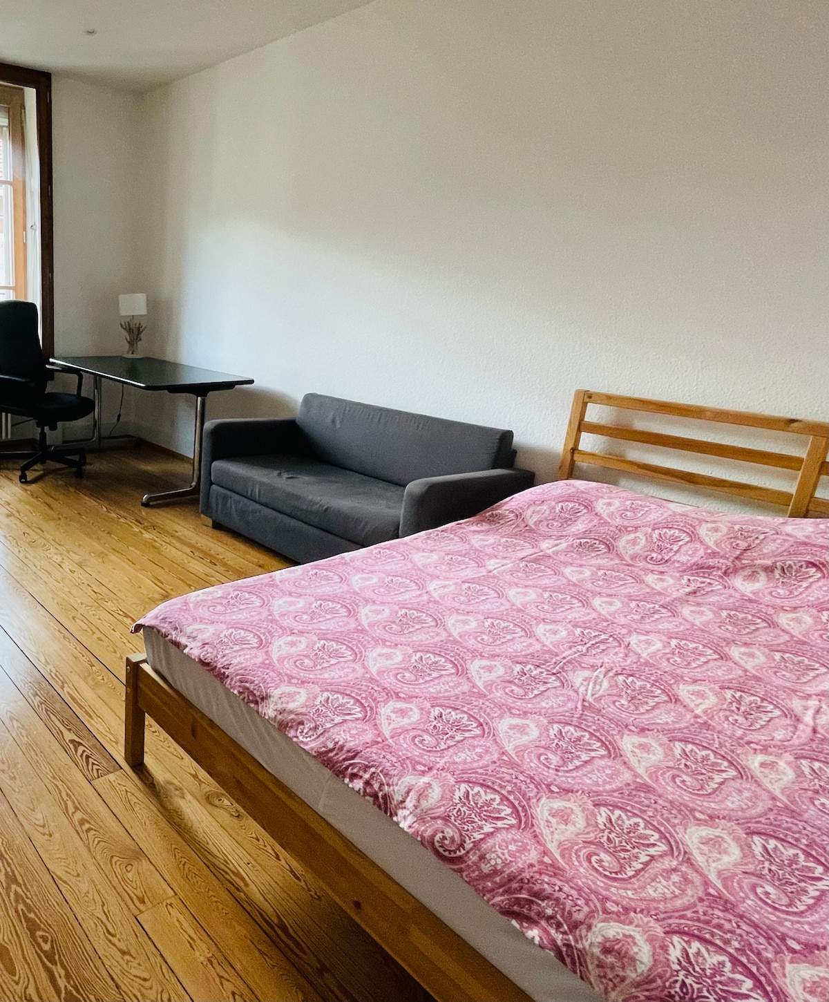 Cozy flat near the center of Geneva. This fully furnished, 42m2 flat features high-quality furniture and internet services, including: -A bedroom with a queen-size bed. -A fully equipped kitchen/living room with a comfortable, queen-size convertible couch. -A bathroom with a rain shower. -Located just 5 minutes from the train station. -15 minutes from the airport. -10 minutes to the Old Town and the lake. -Numerous shops in the area and shopping centers nearby.