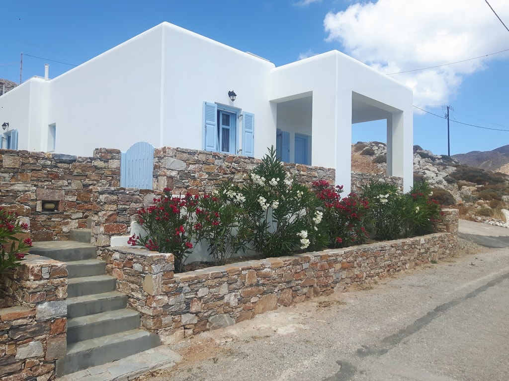 Une maison paisible avec une vue magnifique sur la mer, située entre trois vieux moulins à vent au bord d'une falaise (Quand il y a des vents forts sur l'île, il peut y avoir de brèves interruptions de l'électricité ou du wifi. Ces problèmes sont généralement résolus très rapidement, et vous pouvez continuer à profiter de votre séjour sans souci.