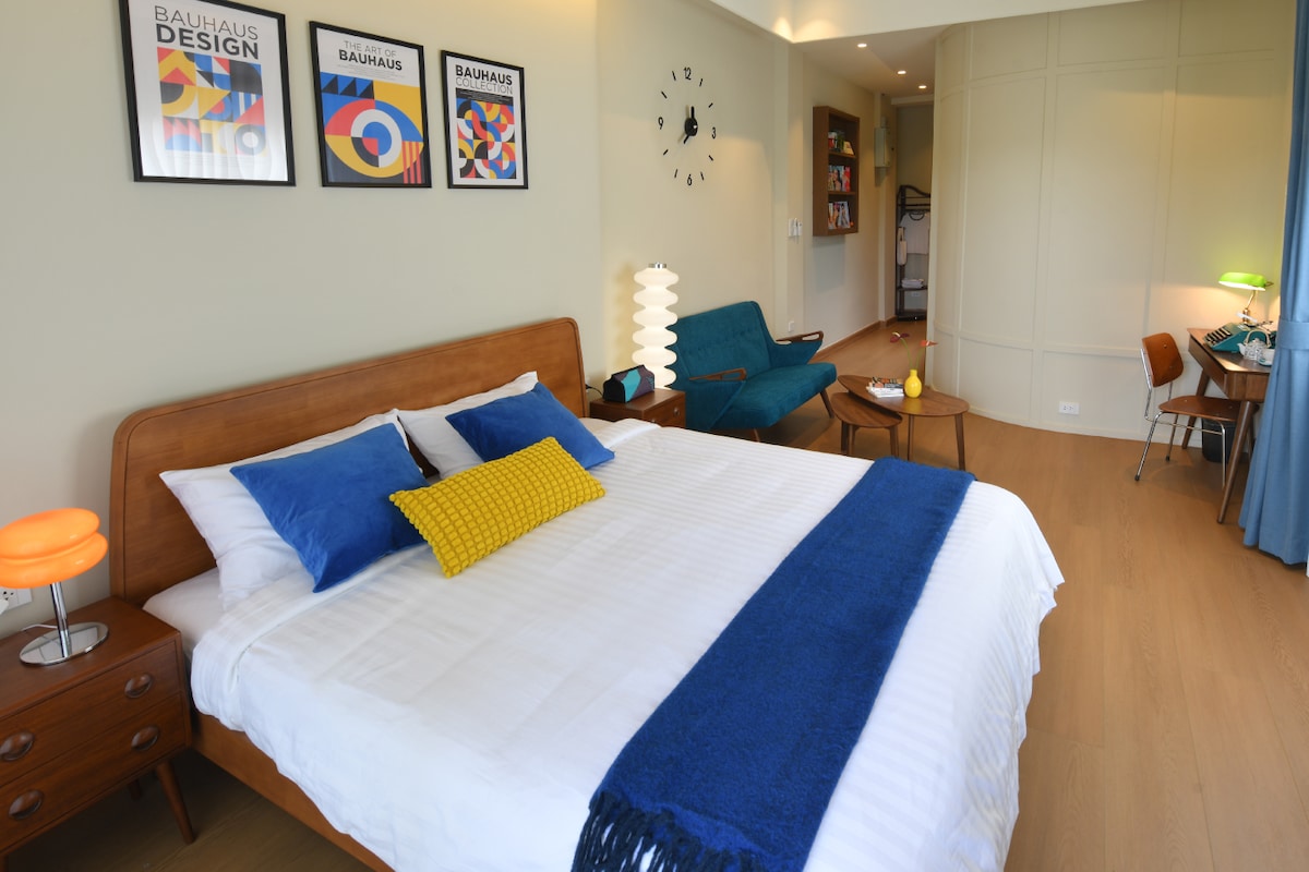 La chambre Bua Luang, 40 m² au 3e étage de The Knight House (TKH) Bangkok, un immeuble de trois étages situé dans le centre de Bangkok (vieille ville) offre un séjour confortable dans la communauté historique de Phraeng Phuthorn avec son riche charme du début de Rattanakosin. Il est proche de sites emblématiques comme le Grand Palais, le Bouddha couché, la balançoire géante et l'île de Rattanakosin. Profitez d'un logement confortable entouré d'histoire, de culture et d'ambiance locale. ** Consultez la section « Autres points à noter » avant de réserver.**