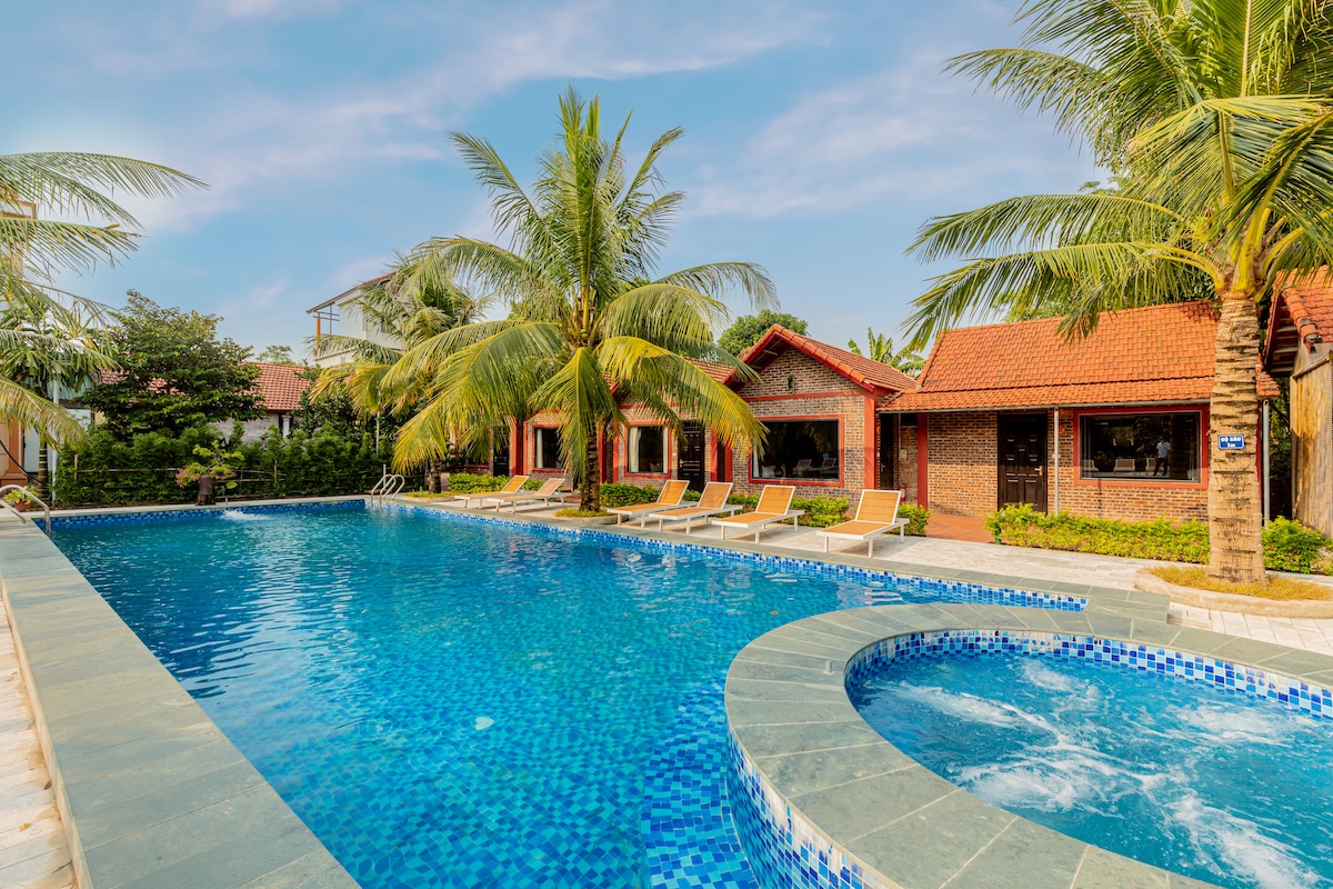 Évadez-vous dans notre charmant bungalow double à Ninh Binh Family Homestay, conçu pour le confort et la tranquillité. Cette retraite confortable offre un mélange parfait d'équipements modernes et de charme traditionnel vietnamien, ce qui en fait une escapade idéale pour les couples. Profitez de l'ambiance sereine de nos jardins luxuriants et plongez dans la piscine. Découvrez l'hospitalité chaleureuse de notre famille et explorez les attractions à proximité comme Bai Dinh, Trang An, Hang Mua, Tam Coc, Hoa Lu Ancient Capital et le parc Cuc Phuong.