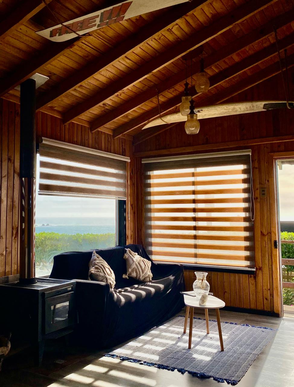 Cabane de 2 étages bien équipée à seulement quelques mètres de la plage. Situé dans un immeuble calme et privé (super sûr pour les enfants) avec son propre parking. La cabane est équipée d'un mobilier moderne et confortable, idéal pour les couples ou les familles à la recherche de vacances à la plage. Commerces, supermarché, cafés et restaurants accessibles à pied. Elle dispose de son propre Wi-Fi FO. S'il fait un peu froid, il y a même un poêle à bois. Si vous êtes surfeur, le meilleur spot de surf, Punta de Lobos, est à 5 min en voiture (ou 30 min à pied le long de la plage).