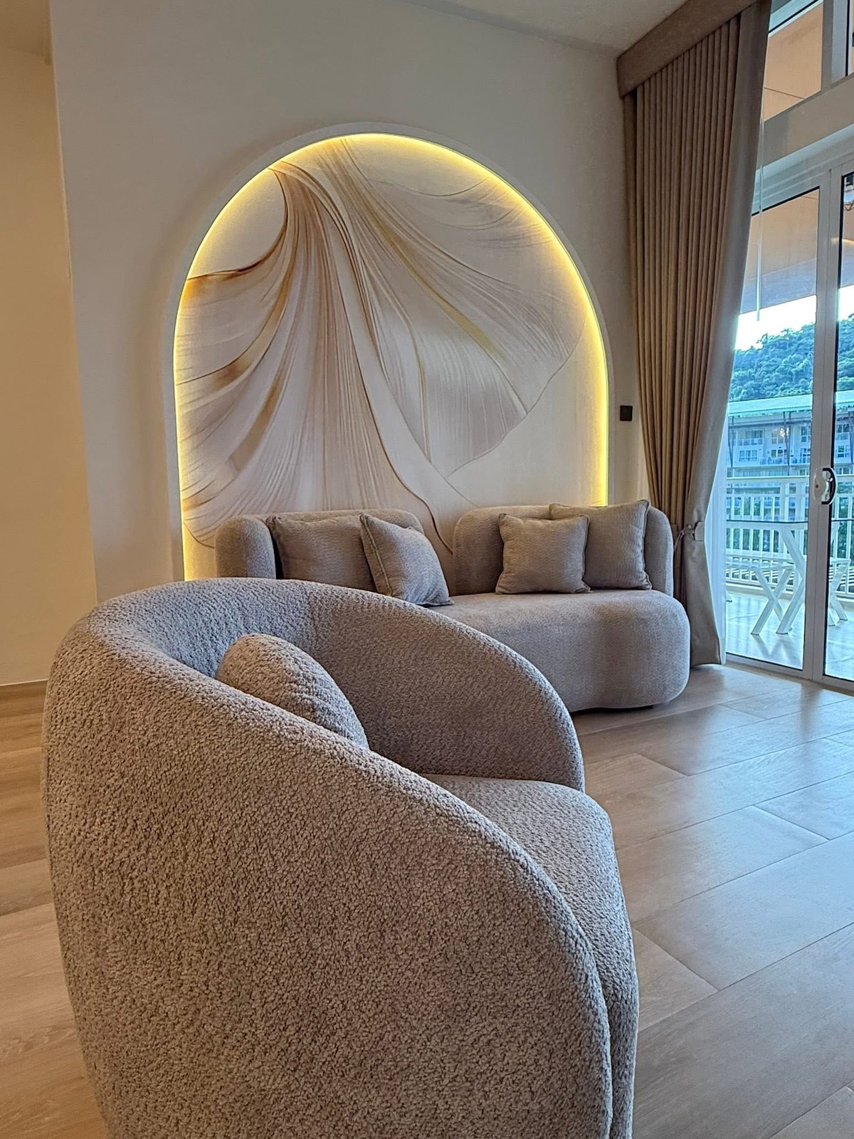 Baignez dans l'élégance de ce logement à l'esthétique industrielle. Situé au 3e étage de Myna A condominium avec accès ascenseur, ce logement de 2 chambres est parfait pour les sorties en famille et en groupe. Détendez-vous et profitez de votre séjour avec une vue panoramique sur le lagon, la forêt et la montagne. Le logement est spacieux et peut accueillir un maximum de 9 personnes.