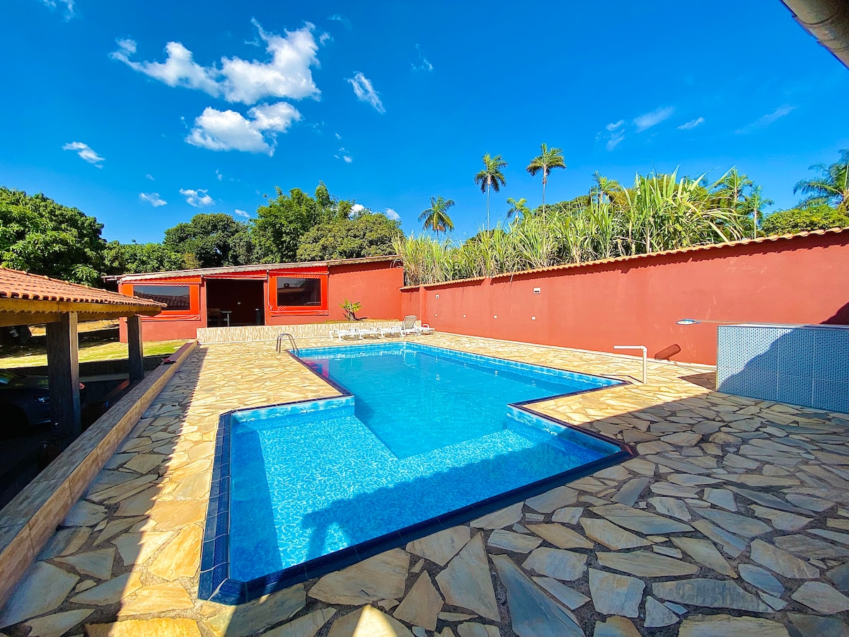 Vous séjournerez dans un endroit charmant, avec beaucoup de verdure, de confort et une structure inégalée. La maison : Située dans une région calme dans une communauté fermée avec une sécurité totale, surplombant la zone de réserve forestière, c'est l'endroit idéal pour se reposer et se détendre. Entrée privée, foyers intérieur et extérieur, piscine, barbecue et grande pelouse. (Cuisine équipée) Les voyageurs ont accès à un potager (sous réserve de disponibilité), avec des produits 100 % biologiques. Votre animal de compagnie est le bienvenu.