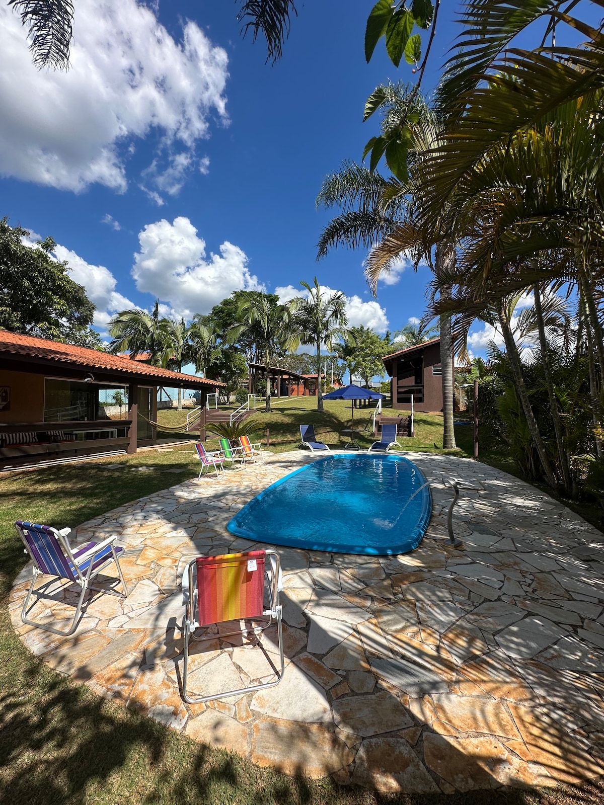 L'endroit idéal pour vous et votre famille, maison complète et bien équipée. Plus de 230 commentaires positifs ! ! Internet 400 Mo - Fibre optique. Belle et confortable ferme entourée de verdure et avec diverses activités pour la famille telles que des sentiers écologiques, 3 lacs et une forêt de réserve luxuriante. Sécurité et conciergerie 24h/24... Excellent endroit pour se reposer, se détendre et profiter de la nature. Cheminée... Piscine privée, espace gastronomique avec barbecue, poêle à bois, c. poupées. Animaux acceptés mais maximum 2.