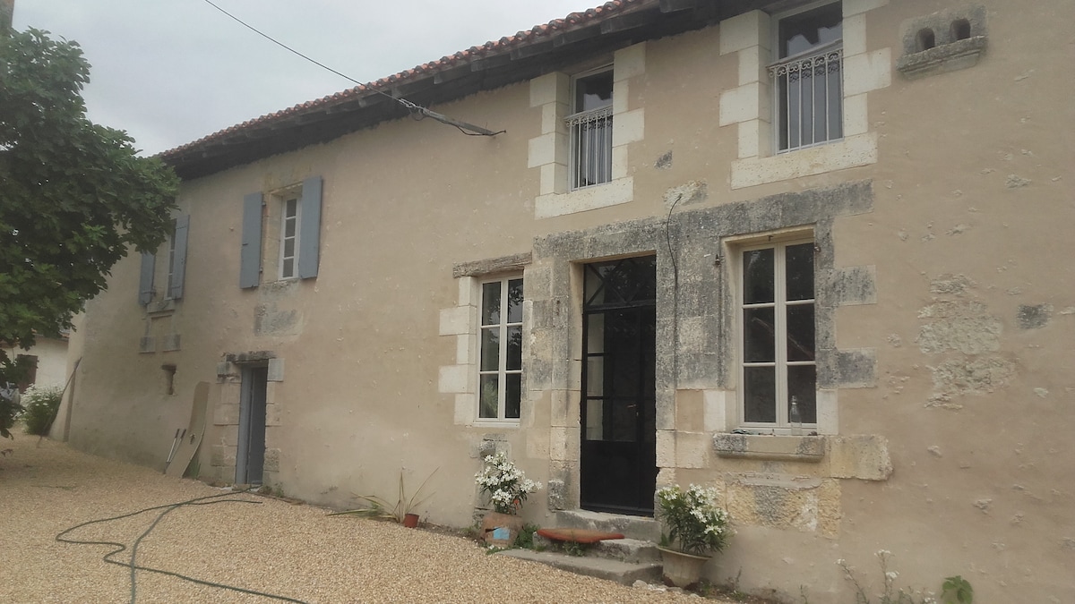 Aux porte du Perigord , Nous louons notre maison, mitoyenne avec entrée indépendante Possibilité de participer à la vie de la ferme avec ses vaches , volailles ,lapins A 5 km ,magnifique village d'Aubeterre , un des plus beaux village de France ,son église monolithe ,ses ruelles ,sa plage , ses restaurants A3 km , la base de nature de Poltrot avec son moulin , ses accrobranches ,son labyrinthe végétal ,ses tables de pique nique , sa guinguette ,marché fermier ,cinéma en plein air ...
