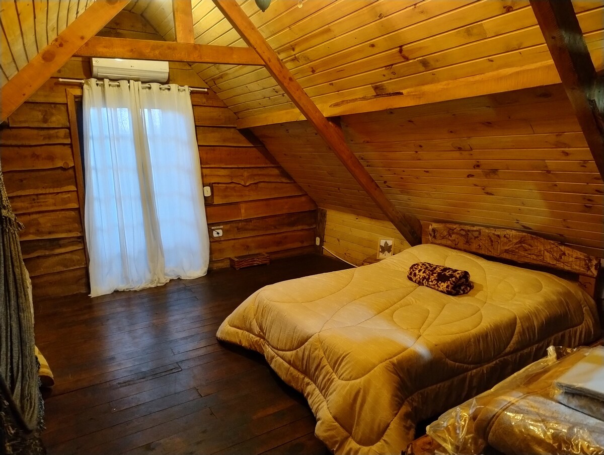 Ce charmant chalet des années 50 est situé sur un grand terrain très boisé, ce qui le rend spécial et avec beaucoup d'intimité. Étant tout en bois, il a un parfum caractéristique. Cela le rend plus confortable et différent pour les personnes qui ne sont pas habituées à utiliser du bois de chauffage brûlé à l'intérieur! Caractéristique frappante dans une cabane au milieu de la forêt qui remonte à l'époque où seul le bois de chauffage était utilisé, pour cuisiner et chauffer la maison et c'est l'une des choses que j'aime le plus dans ce refuge dans la nature !