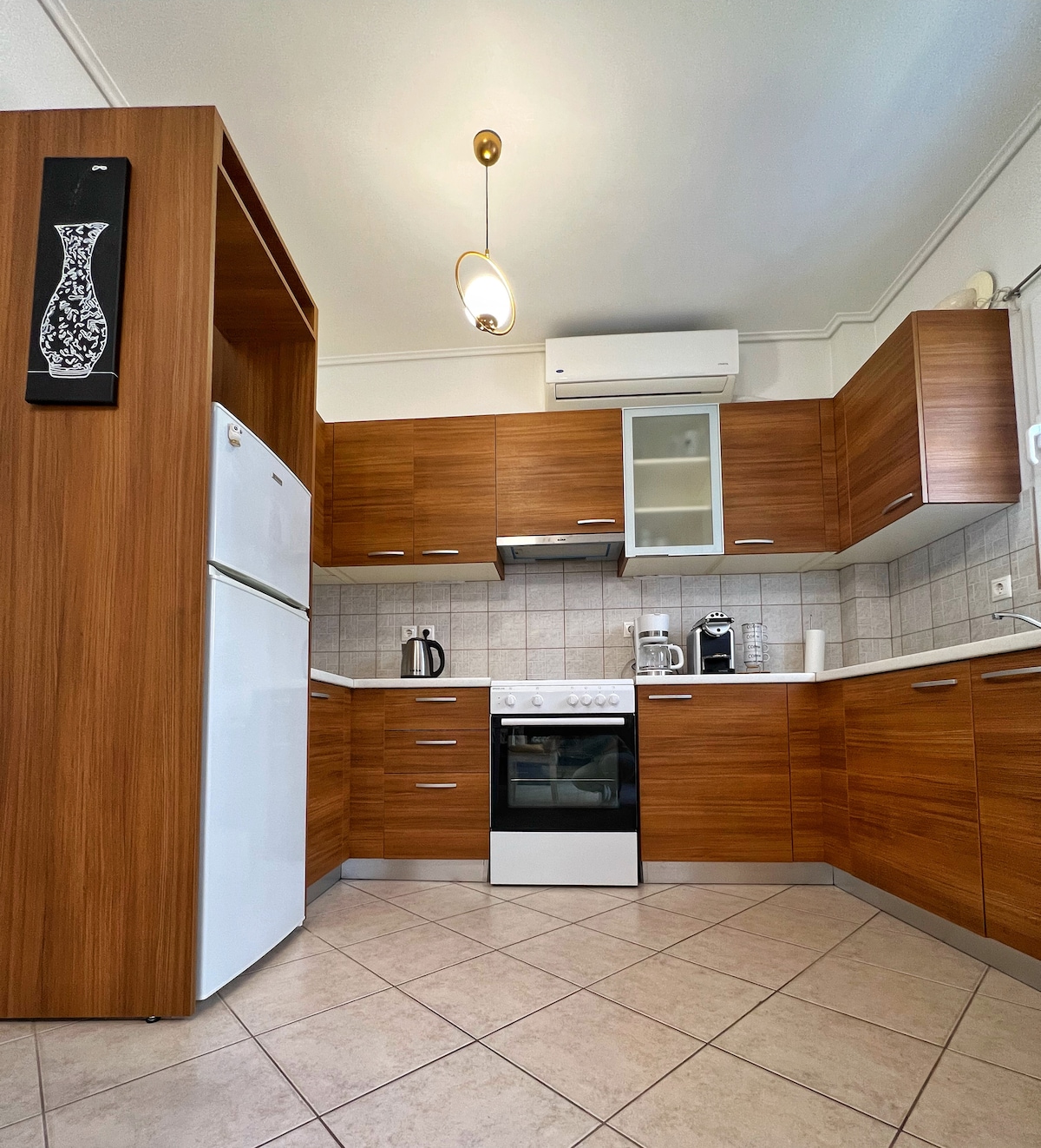 Appartement d'une chambre au rez-de-chaussée, élégant et spacieux (47 m²), nouvellement construit en 2022. Décoré avec le plus grand soin, l'espace vise à offrir une expérience agréable aux voyageurs. Idéal pour les couples ou les familles, situé dans une partie paisible du Pirée, mais à seulement 5 minutes du port en voiture. C'est l'endroit idéal pour une nuit avant de prendre un bateau pour les îles grecques ou pour des séjours plus longs, car il est entièrement équipé et la cuisine est adaptée à la préparation des repas.