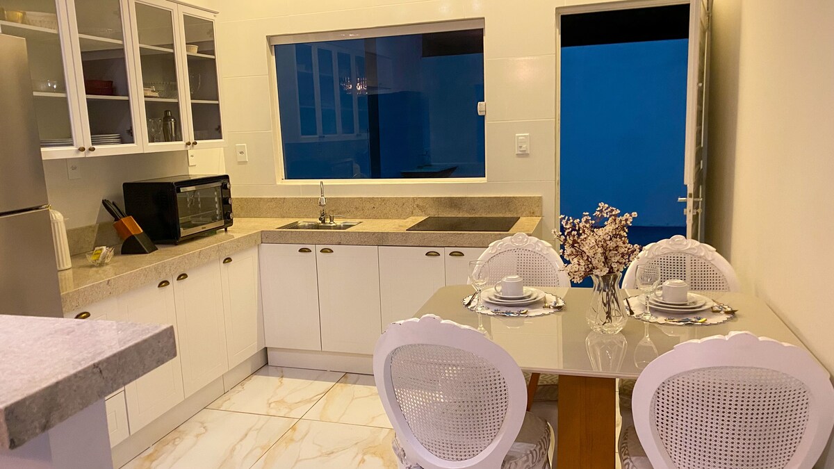 Quartier résidentiel calme et sûr, idéal pour ceux qui veulent se reposer loin de l'agitation du centre historique, idéal pour ceux qui recherchent le confort, la tranquillité et la praticité à Piranhas-AL. La maison est neuve et équipée, parfaite pour les couples, les familles ou les petits groupes. Il dispose de deux chambres confortables, d'une salle de bain bien éclairée, d'une connexion Wi-Fi rapide et d'une cuisine complète. Après les visites, profitez du confort du salon ou du balcon avec une guirlande lumineuse et un barbecue portatif.