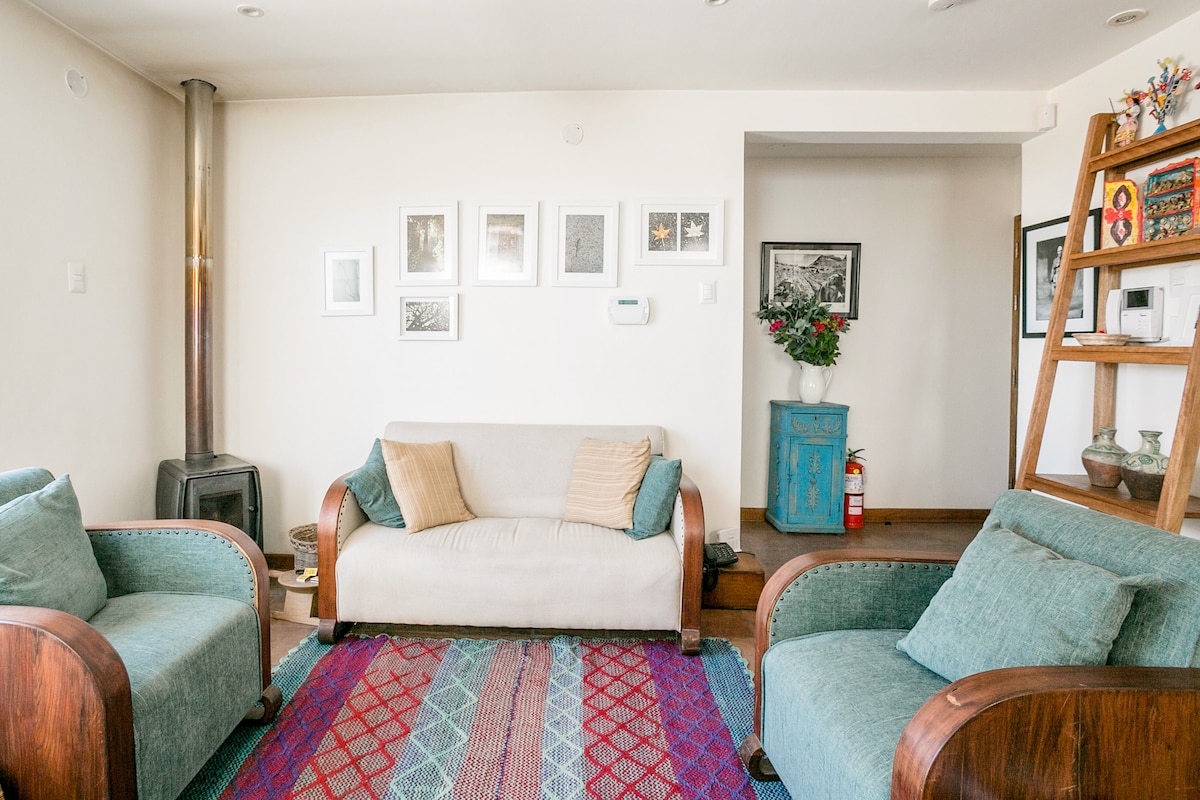 Notre maison est une suite romantique au caractère artistique. Tous les meubles et la décoration ont été conçus et fabriqués par les célèbres artisans de l'association Don Bosco. Vous disposerez d'un espace privé pour vous et votre partenaire avec une cheminée et une vue sur le jardin. Notre lit est un LIT COMPLET. - Propreté : notre personnel d'entretien est professionnellement formé pour que nos maisons soient impeccables et bien rangées pour chaque voyageur. - Emplacement : nous sommes situés au cœur du centre historique de Cusco.