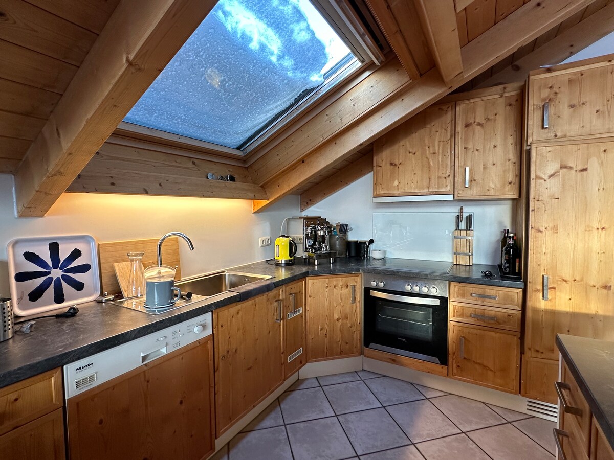 NIKA Loft est un appartement mansardé de 70 m² élégamment meublé dans le centre-ville de Rosenheim. Lors de la rénovation de base il y a 5 ans, pratiquement tout, à l'exception de l'ancienne construction de toit qui donne à l'appartement beaucoup de charme et de chaleur, a été rénové. Les avantages de l'appartement sont l'emplacement calme tout en étant proche du centre et de la gare (10 min à pied), l'espace de vie généreux, 1 parking privé + parking public devant la porte et la proximité de la nature avec le site de l'exposition horticole.