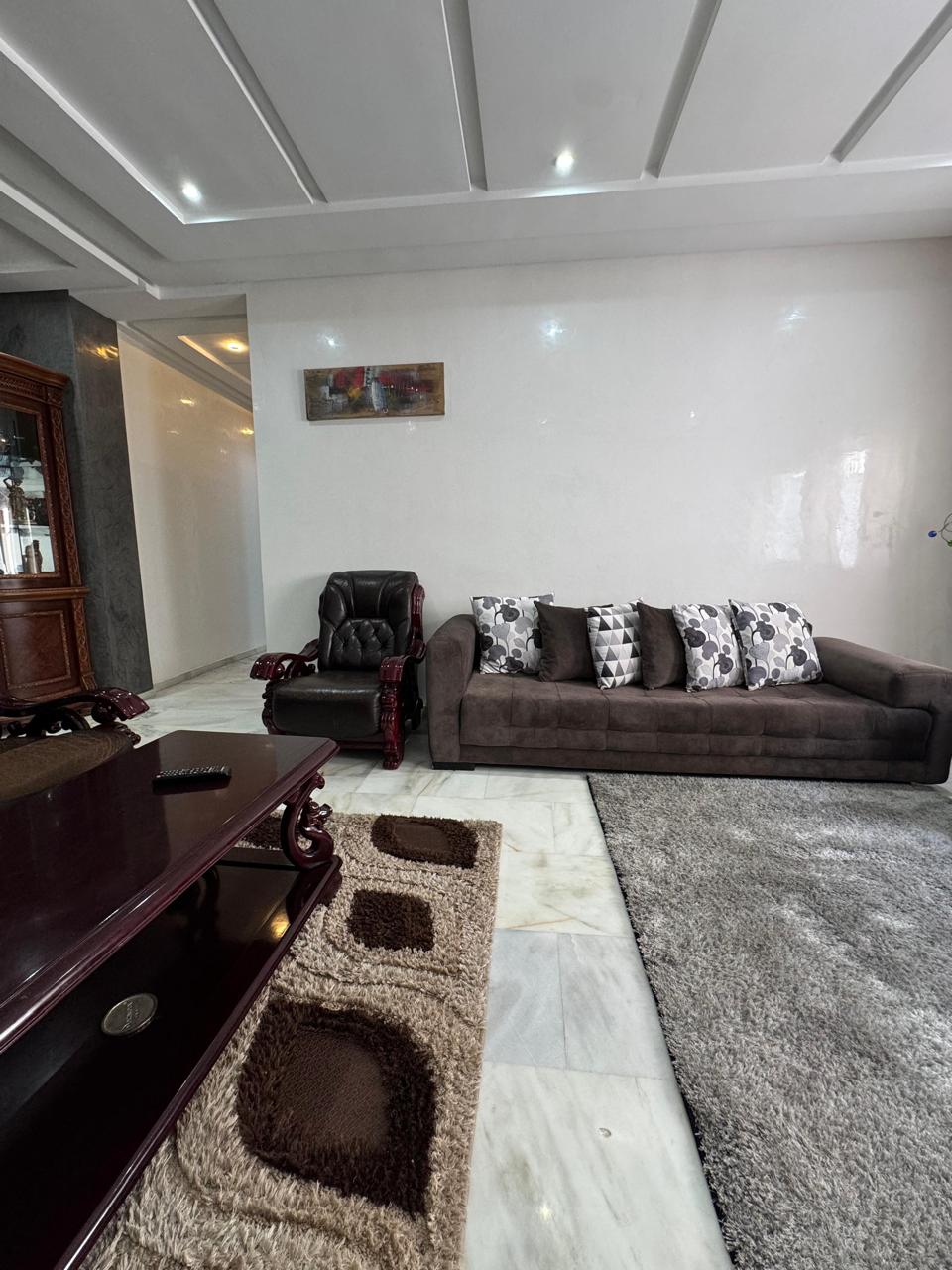 Appartement Élégant avec Terrasse Bienvenue dans ce magnifique appartement alliant modernité et confort, idéalement conçu pour un séjour relaxant. Situé au rez-de-chaussée, ce logement lumineux et spacieux Il se trouve à seulement 5 minutes en voiture de la plage, le centre commercial Carrefour est à 3 minutes à pied Que vous soyez en couple, en famille ou entre amis, cet appartement vous garantit un séjour agréable. Pour les couples marocains, il est important de présenter un acte de mariage.