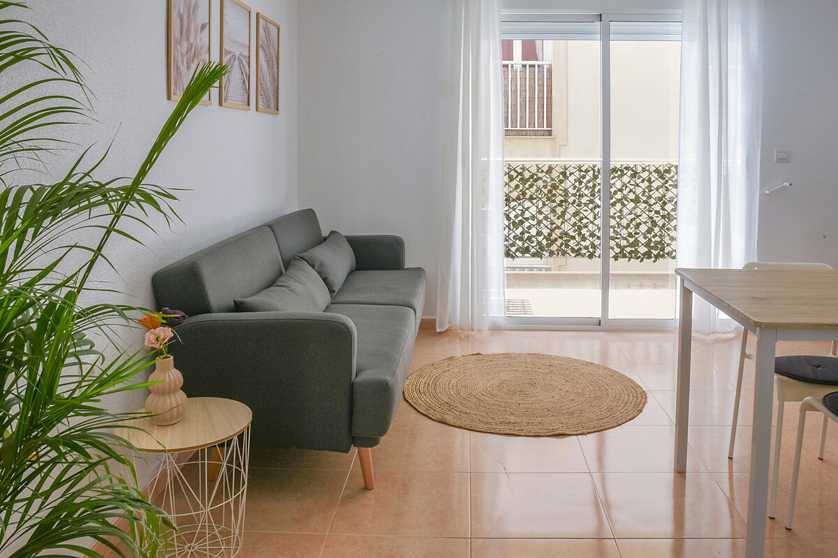 Appartement neuf (achevé en juin 2020), profitez du soleil avec son balcon et sa terrasse, se compose de deux chambres (une avec un lit double et l'autre avec un lit simple), ainsi que d'un salon-cuisine avec un grand canapé-lit. Équipé de la climatisation et du WIFI gratuit, en plein centre (idéalement situé entre la Playa del Paseo et la Playa de la Isla), avec la modernité d'une nouvelle construction et avec l'ambiance marine caractéristique de Sosiego.