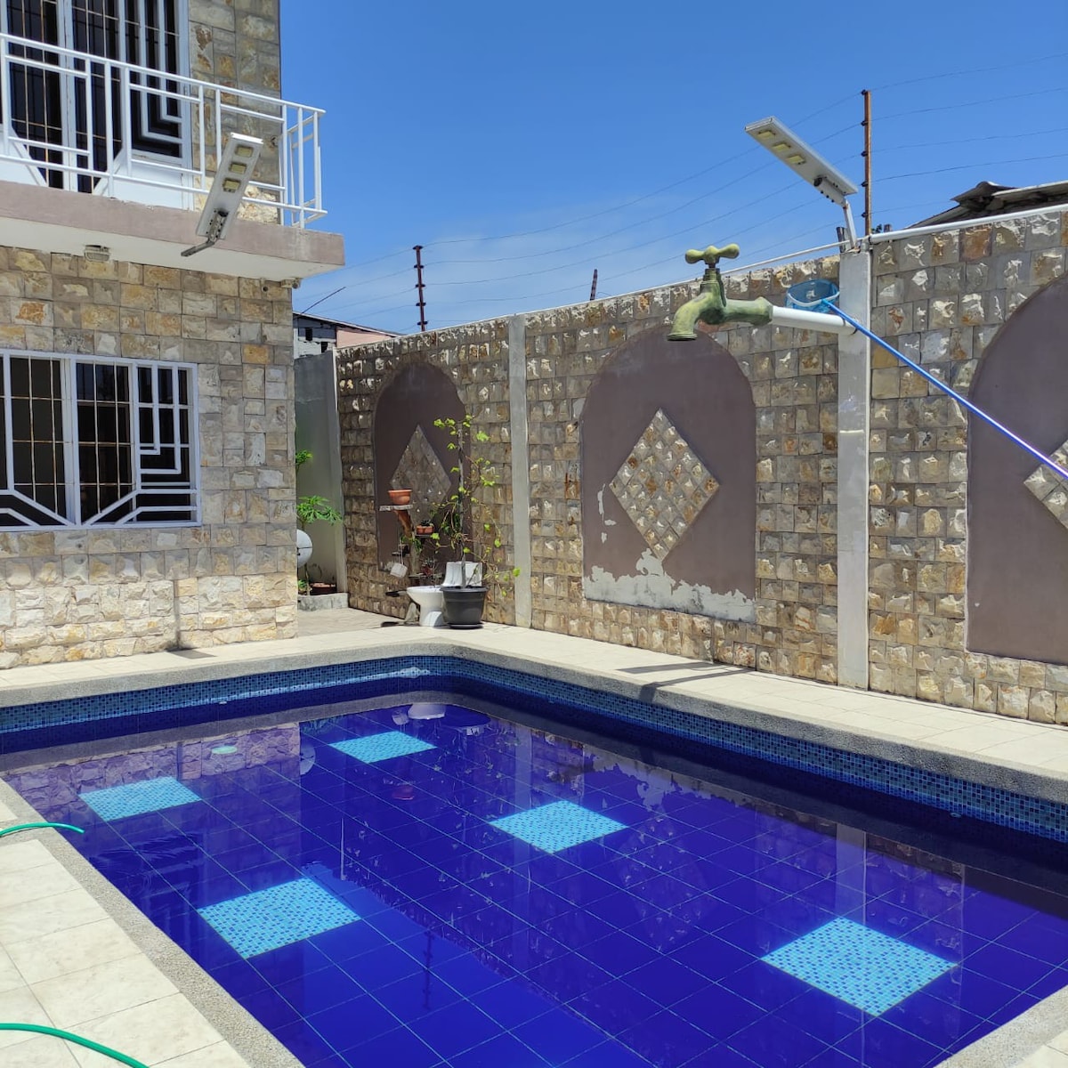 Excellent emplacement, en face de la plage de Chipipe, le secteur le plus exclusif et le plus sûr de Salinas. Il dispose d'une connexion Wi-Fi haut débit (550 Mbps), 3 climatiseurs split. Eau chaude, 2 SmartTV et Parking intérieur (1 Véhicule). Depuis le balcon, vous pourrez apprécier la mer et les magnifiques couchers de soleil. Le bâtiment dispose de 2 ascenseurs qui fonctionnent 24/7 même si la lumière s'en va. Il comprend l'accès à : piscines, jacuzzi, sauna, vapeur, salle de sport, billard et ping-pong. Vous pouvez demander un parasol et des chaises (sous réserve de disponibilité)