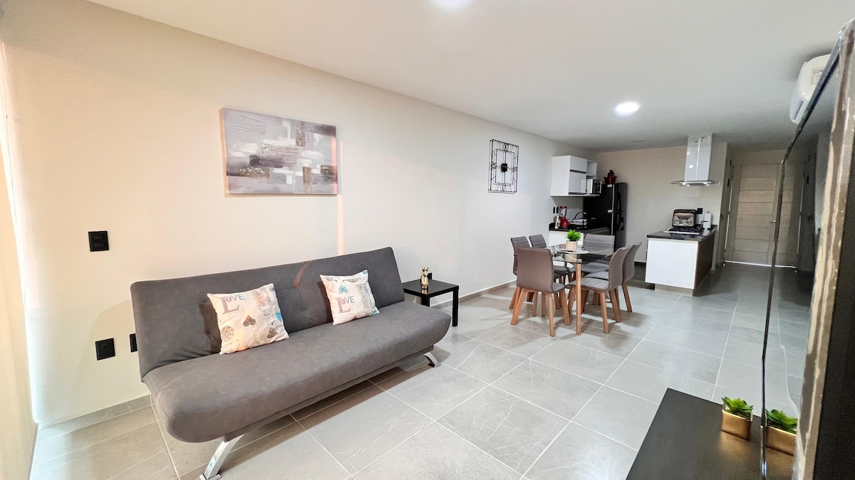 Charmant appartement dans complexe résidentiel, quartier très sûr, 2 contrôles d'accès de sécurité avec cabine de surveillance 24/7 et équipé de tout ce dont vous avez besoin pour profiter de bonnes vacances. Excellent emplacement, à 5 minutes de l'aéroport, à 3 minutes de La Isla Shopping Center, Mundo Imperial, Gotcha, à quelques minutes des meilleures plages de la région, ainsi que de multiples options de restaurants, bars, magasins et supermarchés tels que Sam 's, Walmart, Soriana, entre autres.
